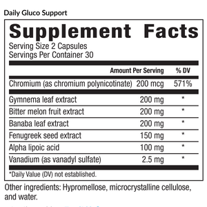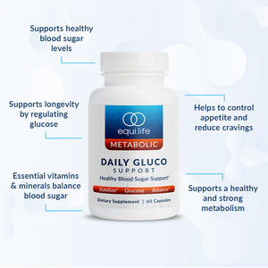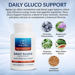 During the aging process, the body's metabolism begins to slow down. These gradual changes affect blood sugar, impacting everything from energy levels to weight. The peaks and valleys of blood sugar can create cravings, increase appetite, which leads to binge eating. Daily Gluco Support can intervene in this cycle. By providing trace minerals, vitamins and plant extracts that modulate blood sugar metabolism, Daily Gluco Support is a great way to enhance your metabolism to support longevity.