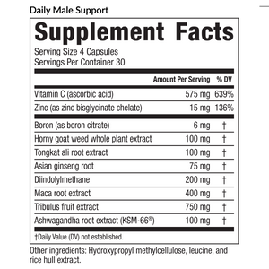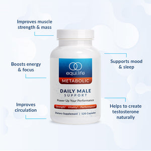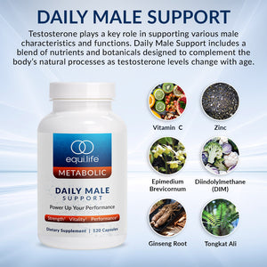 Testosterone is the primary male hormone in charge of the development and maintenance of all male characteristics including muscle mass, bone density, production of red blood cells, mood, energy, and more. As men age, it's natural to experience a decline in testosterone levels which can lead to a range of physical and emotional health challenges. While most supplements that support testosterone production are synthetic, Daily Male Support can help your body create more of its own supply for long term benefits.