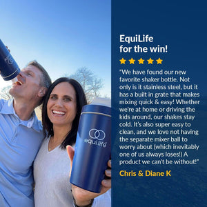 Elevate your wellness routine with EquiLife’s high-quality, non-toxic Stainless Steel Shaker Bottle – a must-have for all of your favorite hot or cold drinks!