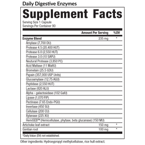 A healthy diet means enjoying a diverse range of fresh produce, protein, fats, and complex carbohydrates. Yet often, many people suffer from food intolerances and sensitivities that make digesting certain foods challenging. Daily Digestive Enzymes gives your body what it needs to optimize digestion and enhance the absorption of nutrients from your food. Everyone reacts differently to different foods, and Daily Digestive Enzymes are here to make digestion easier for everyone.