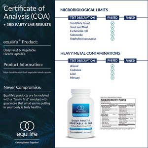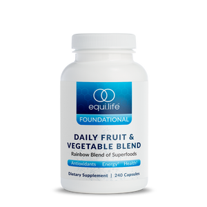 You probably know by now that you should be eating the recommended 7-9 servings of fruits and vegetables every day. The problem is, even if you eat the recommended servings on a daily basis, you're probably not getting the wide variety of colorful vegetables your body needs. The EquiLife Daily Fruit & Vegetable Blend (Capsules) is the fastest and most simple way to ensure you get the benefits of 22 fruits and vegetables, plus antioxidants and rare superfoods that support optimal health with quick and easy capsules.