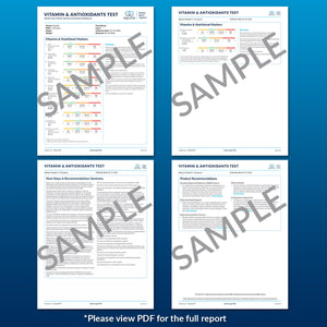 The Vitamin & Antioxidants Test is designed to provide insights into your nutritional status, antioxidant capacity, and detoxification pathways. Measuring specific vitamins and metabolic markers may help identify imbalances that could influence your overall health. This test includes 13 key biomarkers, offering valuable information about your body's needs and helping you make informed choices about your health.
