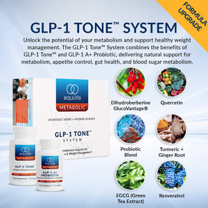 The GLP-1 Tone System utilizes a unique combination of GLP-1 Tone™ and GLP-1 A+ Probiotic to provide natural, effective support for your metabolism.