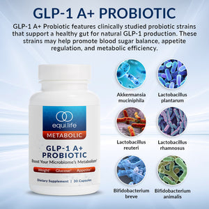 Many people are turning to synthetic options to help maintain healthy blood sugar and control appetite, but these may come with potential side effects that could negatively impact digestion and long-term health. Scientific research now shows that specific probiotic strains may help naturally stimulate GLP-1 production, improving insulin sensitivity and metabolic function. GLP-1 A+ Probiotic is designed to work with your body's natural processes, supporting a healthier microbiome for optimal metabolic balance.