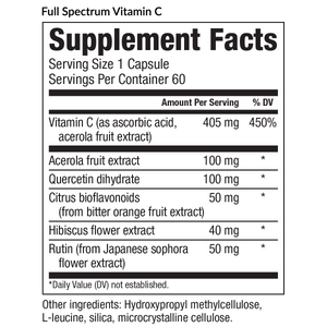 With so many vitamin c supplements in the market, selecting a high-quality product can be difficult. Without any cheap fillers or extremely acidic ingredients, Full Spectrum Vitamin C is an easy way to boost your immunity with powerful antioxidants and plant-based flavonoids.