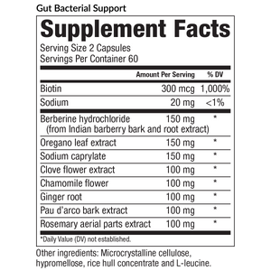 Combining distilled botanical extracts and a range of B-Vitamins, Gut Bacterial Support provides targeted ingredients designed to create an environment inhospitable to unwanted bacteria while fostering a space for beneficial microbial strains to grow.