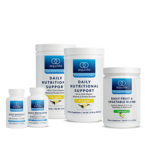 You probably know by now that you should be eating the recommended 7-9 servings of fruits and vegetables every day. The problem is, even if you eat the recommended servings on a daily basis, you're probably not getting the wide variety of colorful vegetables your body needs. The EquiLife Daily Fruit & Vegetable Blend is the simple way to ensure you get the benefits of 22 fruits and vegetables, plus antioxidants and rare superfoods that support optimal health.