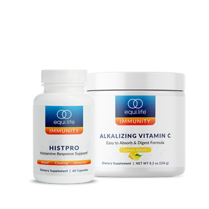 Histamines are part of the body's natural immune system response to help identify foreign invaders. Histamine response is triggered by unfamiliar compounds like pet dander, pollen, and dust and can also be found in certain foods. When histamines are released in the body they can stimulate further production, which causes a positive feedback loop. This can lead to increased mucus production, a runny nose, coughing, and itching. The Healthy Histamine Protocol works to mitigate an excessive response with a formulation of ingredients designed to interrupt and decrease the release of histamines.