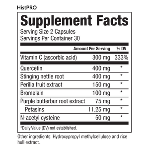 Seasonal sensitivities offer many challenges and can limit your enjoyment of the outdoors. HistPro utilizes a targeted blend of flavonoids, antioxidants, enzymes, and botanicals to provide comprehensive support for seasonal challenges caused by common environmental irritants. HistPro is a natural way to balance your body's histamine response.