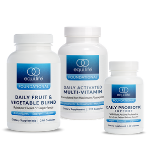 Daily Foundational Protocol (Capsules) - Level 1 is the ultimate one-stop-shop to start your day the EquiLife way. Optimize your health with essential vitamins, minerals, active probiotics plus the added boost of antioxidant superfoods. This simple regimen is the best way to get up, get going, and provide yourself with all the essential nutrients you need to feel great.