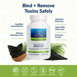 Enhance your body's ability to safely remove toxins with EquiLife's Universal Binder™. This remarkable formula leverages Bentonite Clay, Humic and Fulvic Acids, Apple Pectin, and Carbonized Activated Charcoal to bind to harmful toxins, increasing the safety and speed at which they are removed from the body. Plus, TUDCA & taurine help open up liver detox pathways for easy and safe elimination of toxins.