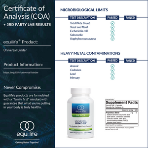 On average, you are exposed to more than 100,000 toxic chemicals in the environment. From perfumes, to cleaning products, air pollution, pesticides and more, these toxins can have a negative impact on your health, especially if they are not consistently removed from the body. By using a targeted blend of high-quality, natural ingredients, EquiLife's Universal Binder™ has been designed to adhere or bind to common contaminants, including heavy metals, mold, and more. This binding process then facilitates fast and safe removal of toxins and invaders via the GI tract.